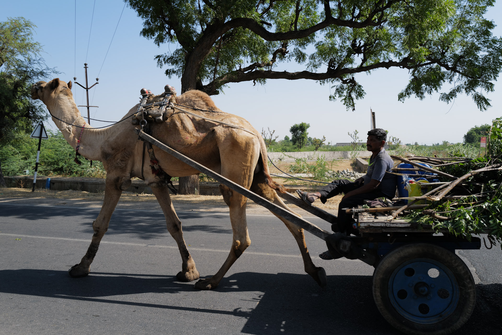 Am Horizont sehe ich Ausläufer des Aravalli-Gebirges, das sich über die Bundesstaaten Gujarat, Rajasthan und Haryana erstreckt. Die karge Vegetation lässt das Wüstenklima erahnen.